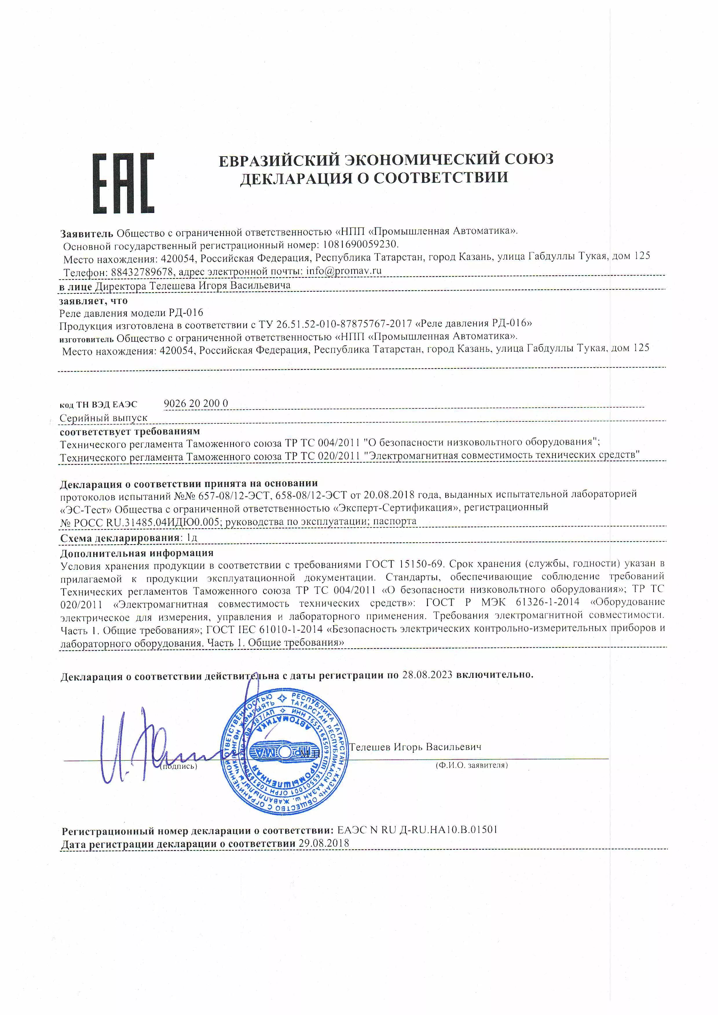 • Реле давления РОСМА