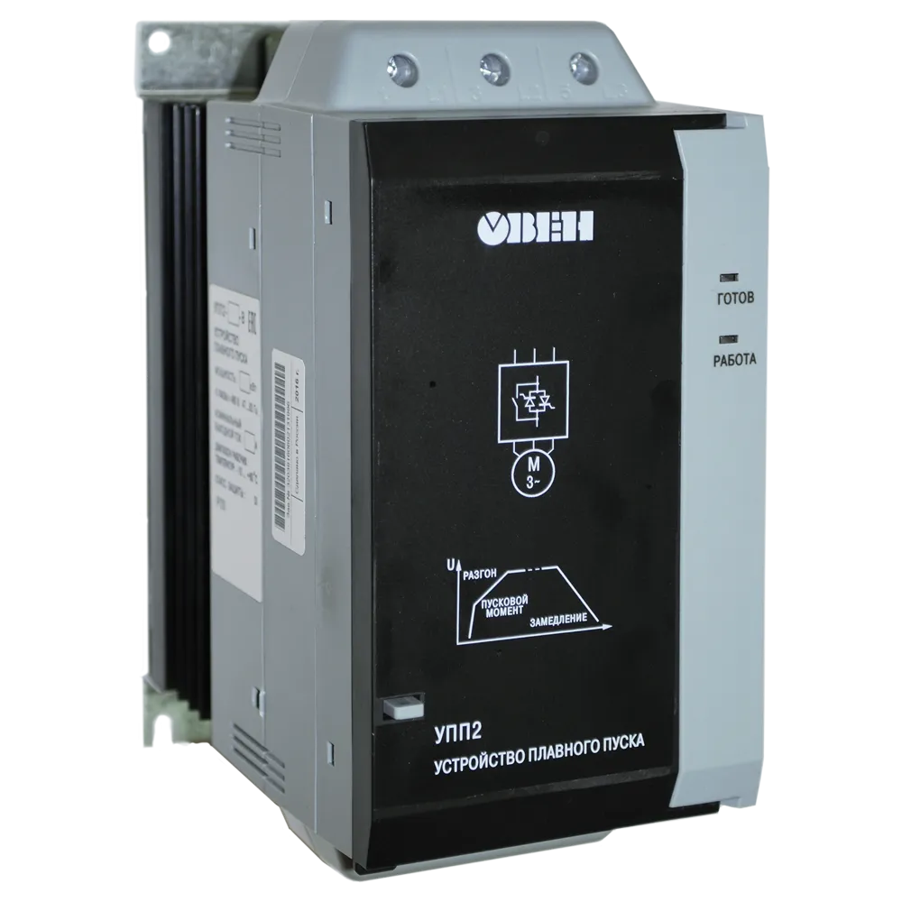 Линейка устройств плавного пуска УПП2 обеспечивает управление пуском и остановкой электродвигателей мощностью до 110 кВт в режиме плавного нарастания напряжения и разработана для использования с внешним устройством защиты электродвигателя.